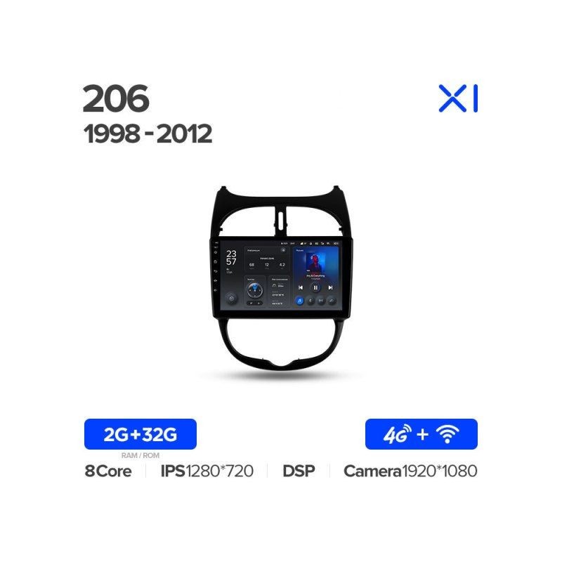 Модель T778_X1-4G_2-32 разработана специально для линейки Peugeot 206. Она оснащена сенсорным экраном диагональю 7 дюймов, мощным процессором и 32 ГБ встроенной памяти. Поддерживает беспроводные проекции Apple CarPlay и Android Auto, что позволяет безопасно пользоваться навигацией и музыкой со смартфона прямо на дисплее. Звуковой тракт с предусилителем высокого качества раскроет потенциал даже штатных динамиков в вашем авто.